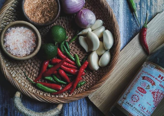 Kicap manis Sedikit jus limau Cara cara. Kemudian masukkan kicap mengikut citaras amasing-masing. Masukkan bwg putih bwg besar n cili gaul 3.
